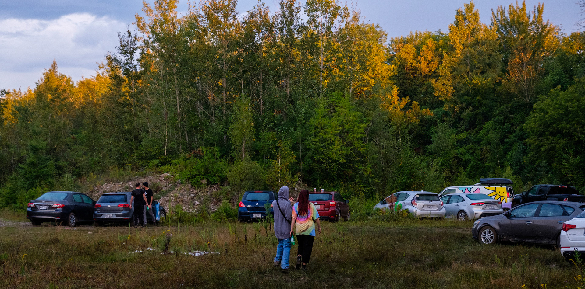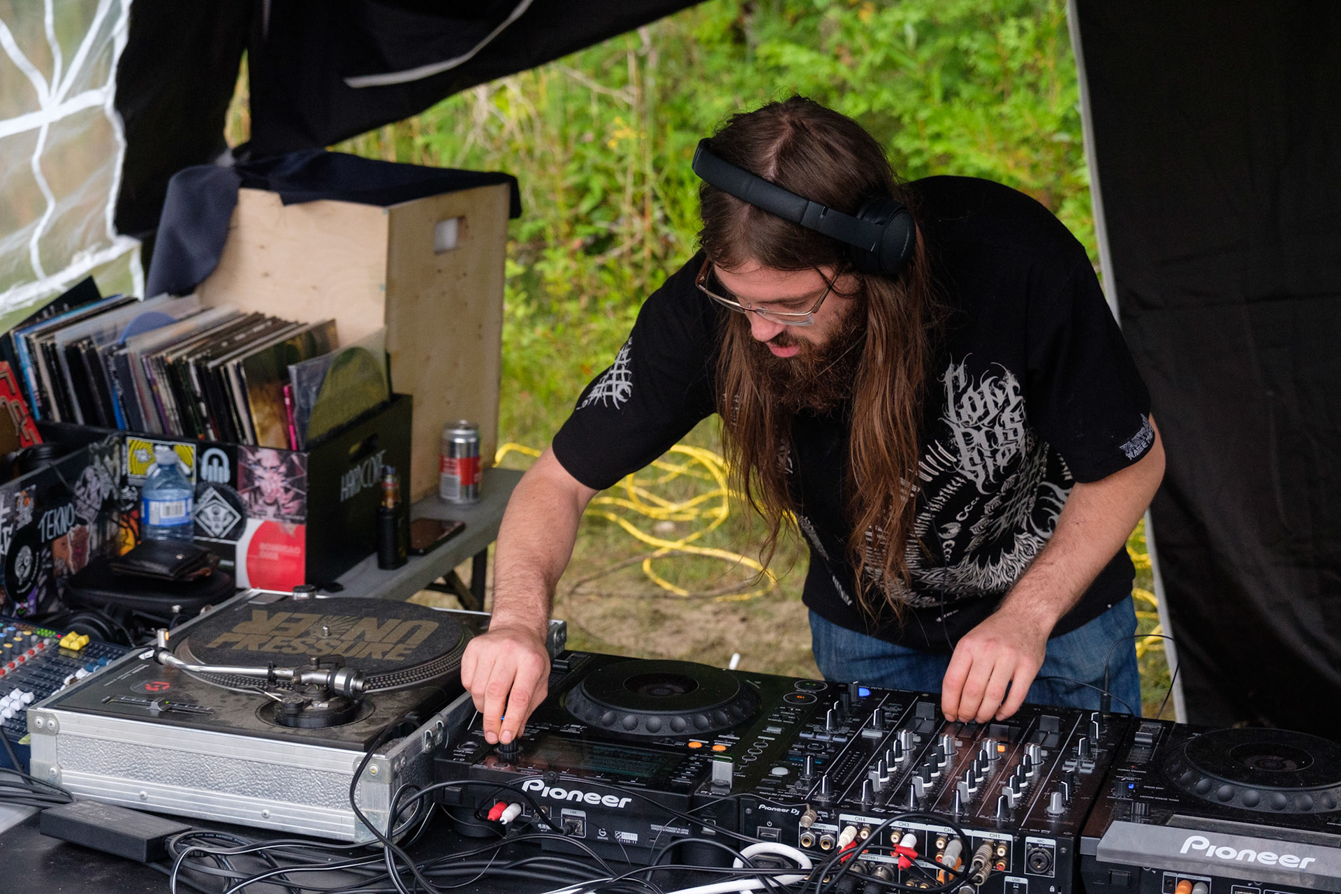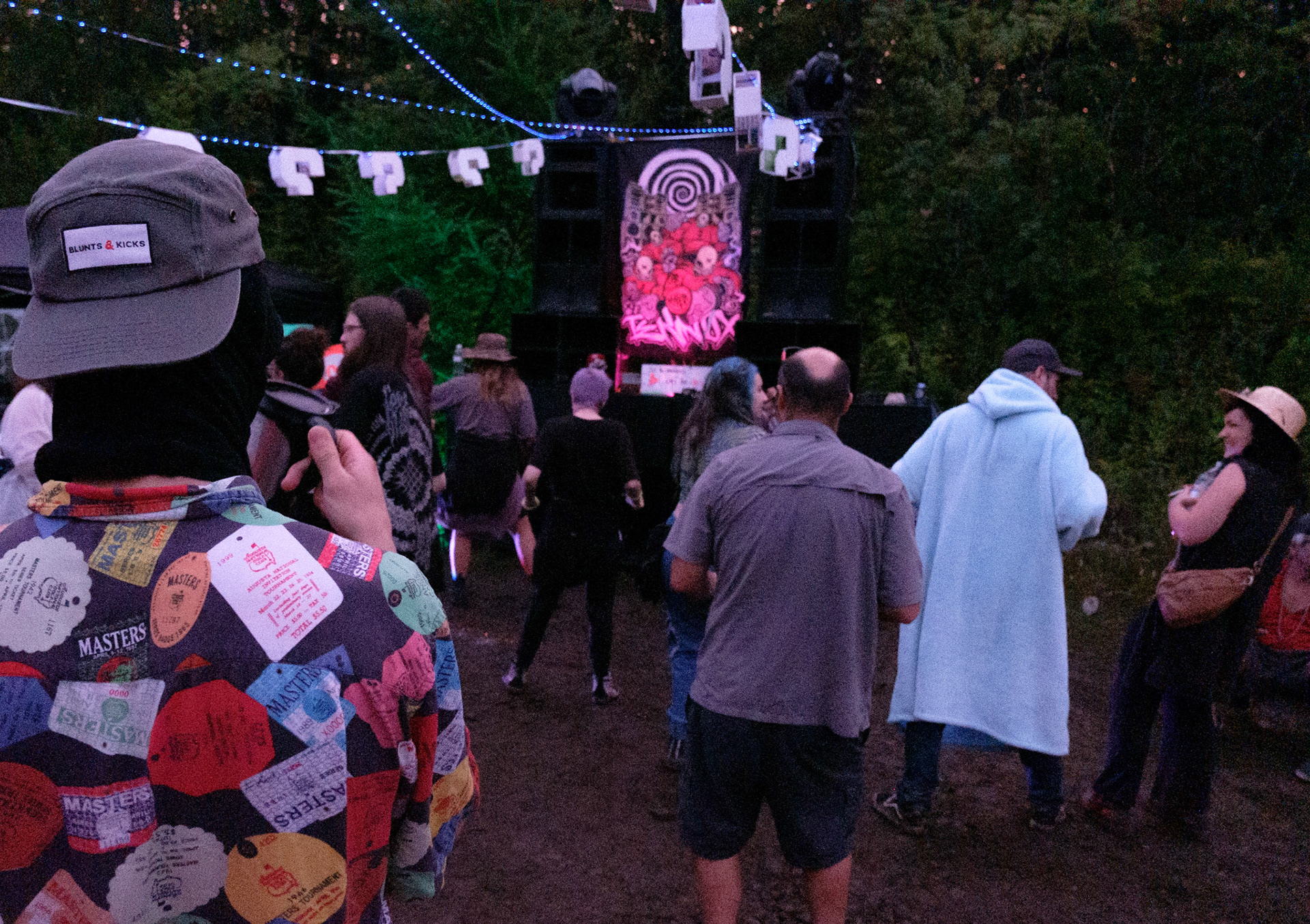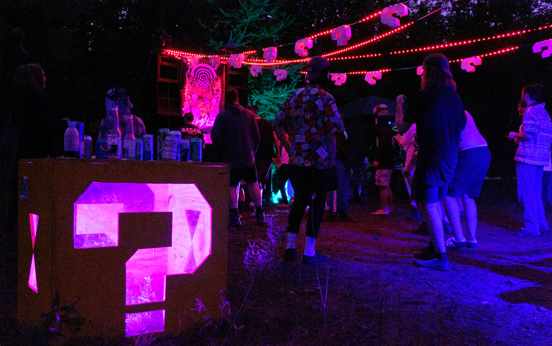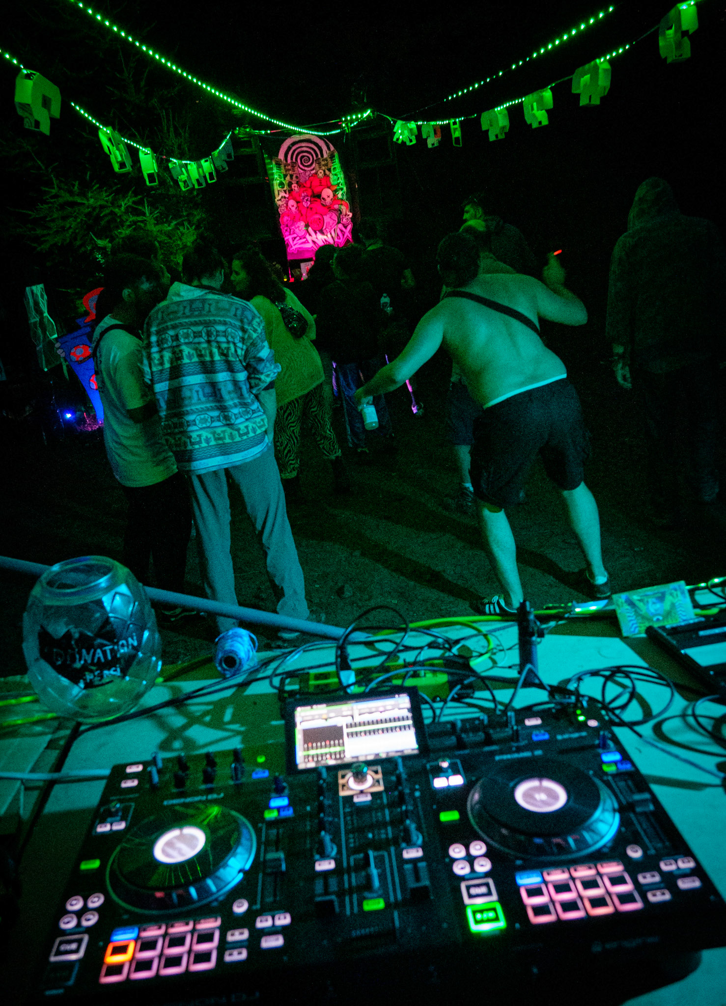 Free party par le sound system Khaos Techniks au Québec. Tournez à gauche après le chemin de l'Arc-en-Ciel pour une nuit sous le signe du sourire et de la tekno.
