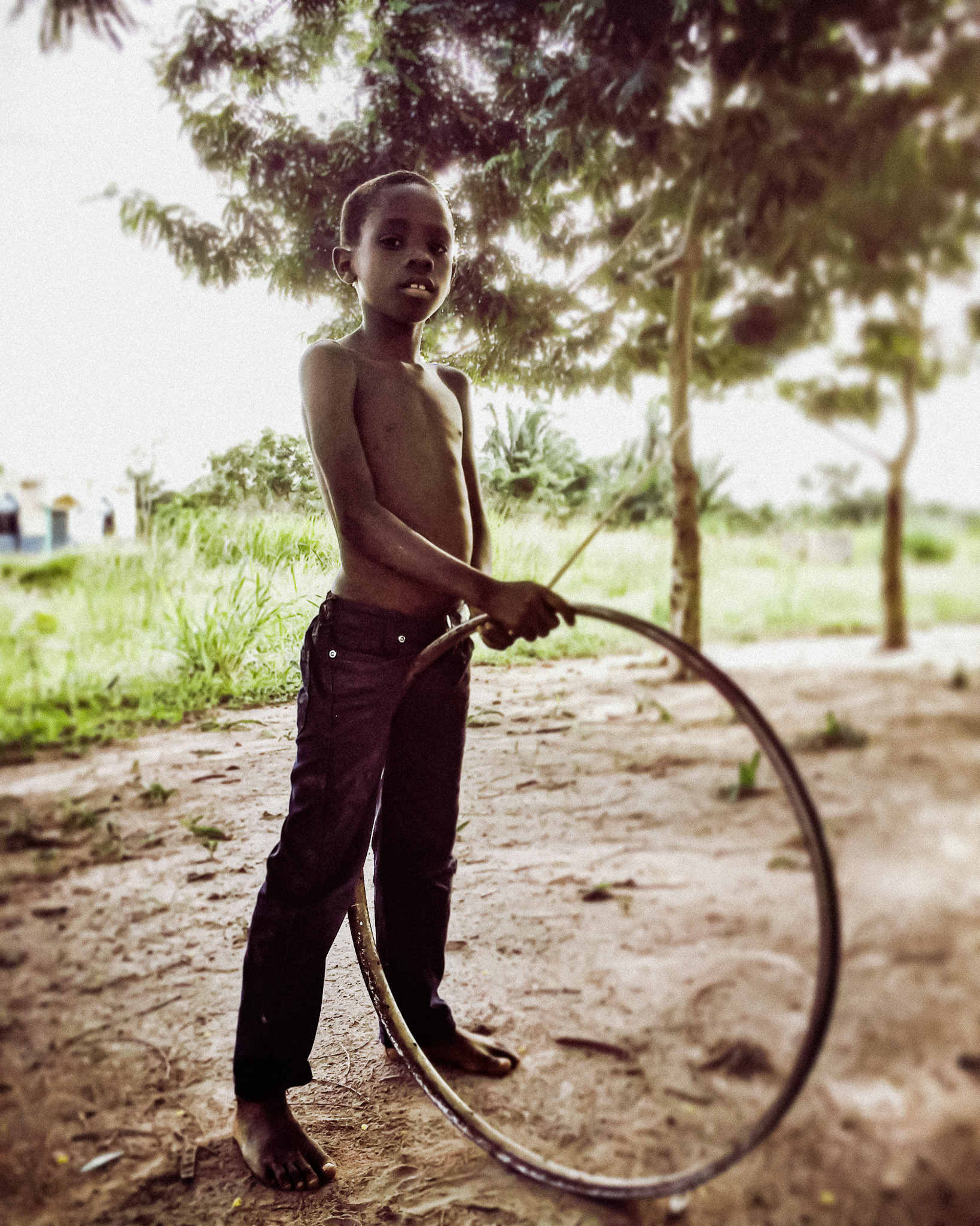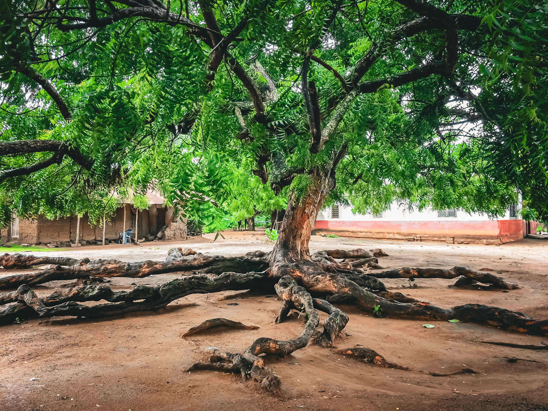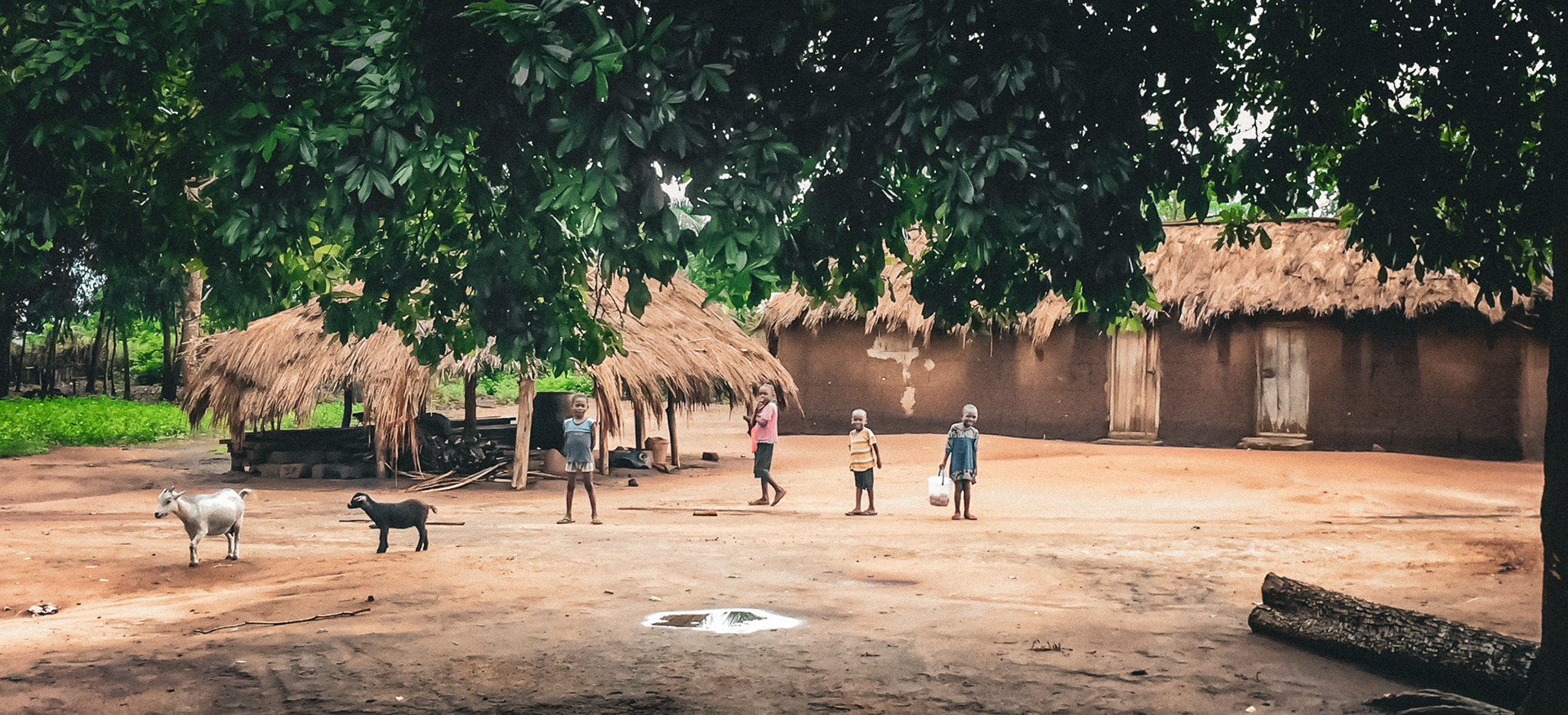 Le village, au loin. Les pluies ont ravagé le sentier de brousse. Les maisons sont de briques de terre, de chaume. Une tôle parfois. La cuisine extérieure. Un grand baobab protège les lieux. Un fétiche y réside. J’espère qu’il saura me voir sans mal.